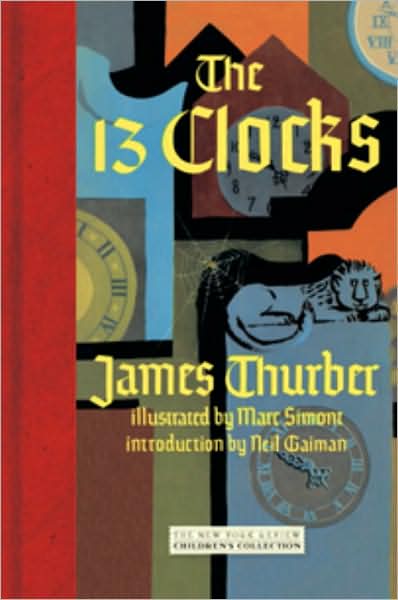 The brambles and the thorns grew thick and thicker in a ticking thicket of bickering crickets. Farther along and stronger, bonged the gongs of a throng of frogs, green and vivid on their lily pads. From the sky came the crying of flies, and the pilgrims leaped over a bleating sheep creeping knee-deep in a sleepy stream, in which swift and slippery snakes slid and slithered silkily, whispering sinful secrets.There is also quite a bit of word play, especially by the Golux, which makes this book a bit more special than your average simple chapter book. Because of the complexity of the language, I didn't fall in love immediately with The 13 Clocks but I did almost flip back to the beginning and read it again in the same sitting. I'm now very curious to read Thurber's other children's book, The Wonderful O, also re-released by NYRB.